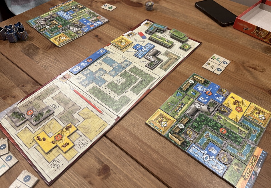 Do naszych rozgrywkę dołączali również najmłodsi. Marta ma zanotowane u mnie cztery rozgrywki, Natan jedną. Powyżej widzimy Park Niedźwiedzi – tytuł w który pierwszy raz zagrałem na Essen w 2017 – powyżej widzimy lekko zmodyfikowaną wersję. Moje zapiski pokazuję że zarówno Magdzie S-W jak i Łukaszowi dobrze szło w ten tytuł.