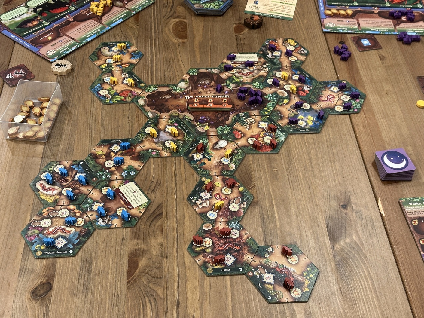 To była moja i Kuby G druga partia w ten tytuł. Łukasz i Jarek dopiero zaczynali z tą grą. Kolejna piękna pozycja, z fajnymi zasadami i ewolucjami, która w ostatecznej rozgrywce sprowadzała się do brutalnej i bezwzględnej rozgrywki o przeżycie. W tym wyścigu palma pierwszeństwa przypadła mi, równo godząc wszystkich innych pretendentów do panowania nad mrowiskiem!