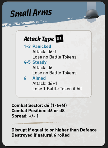 Vincent: The core mechanics replicate those of Valiant Defense games. David Thompson has very kindly given his blessing 🙂 The mechanics are fairly simple: Each Para has an Attack Value that determines the number of Attack dice rolled (d6 or d4 if a counter moved). You compare the result to the Defense Value of the 1st Battery target, and if the result is equal to that Value, the 1st Battery counter is Wounded (something new) and if the result is higher, that counter is Destroyed.