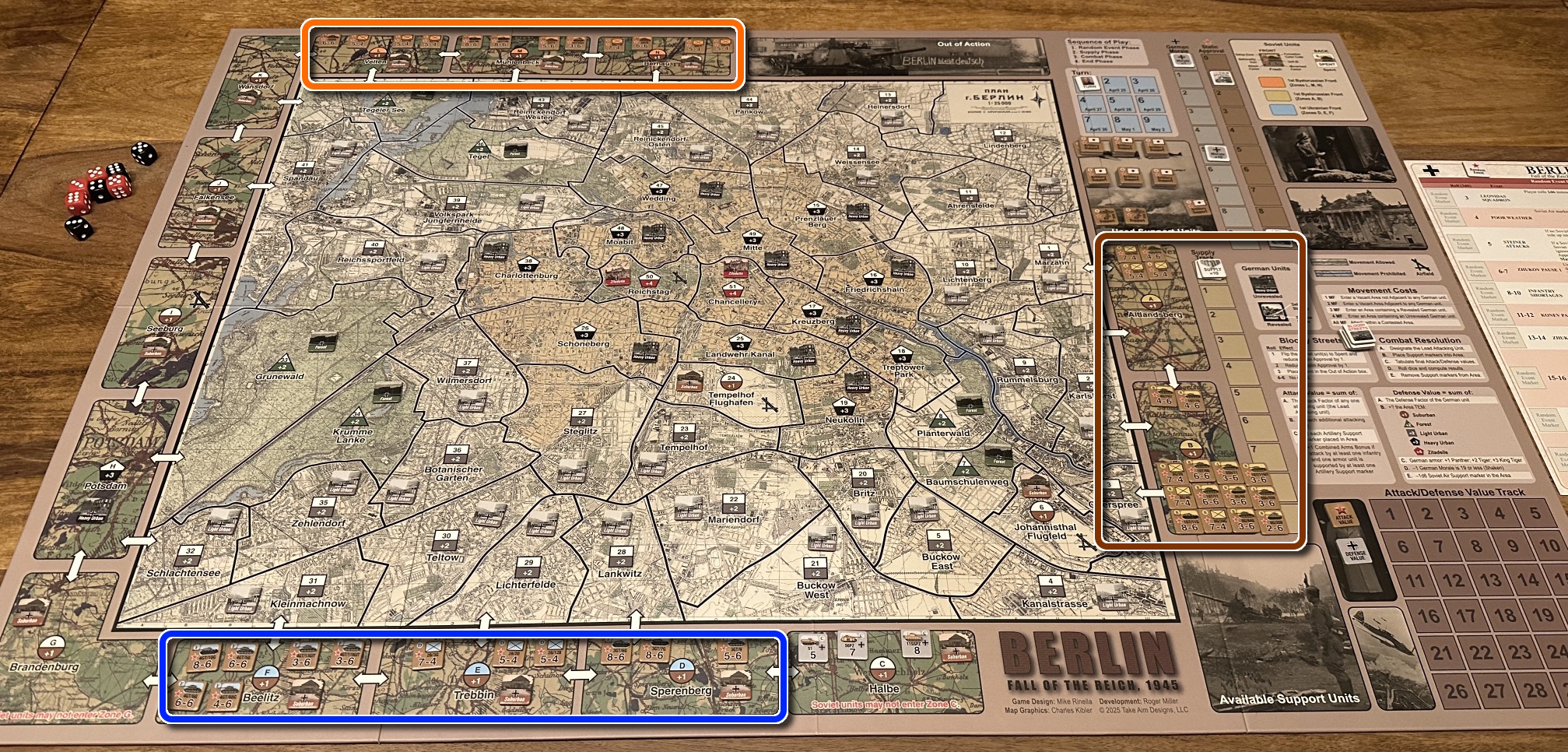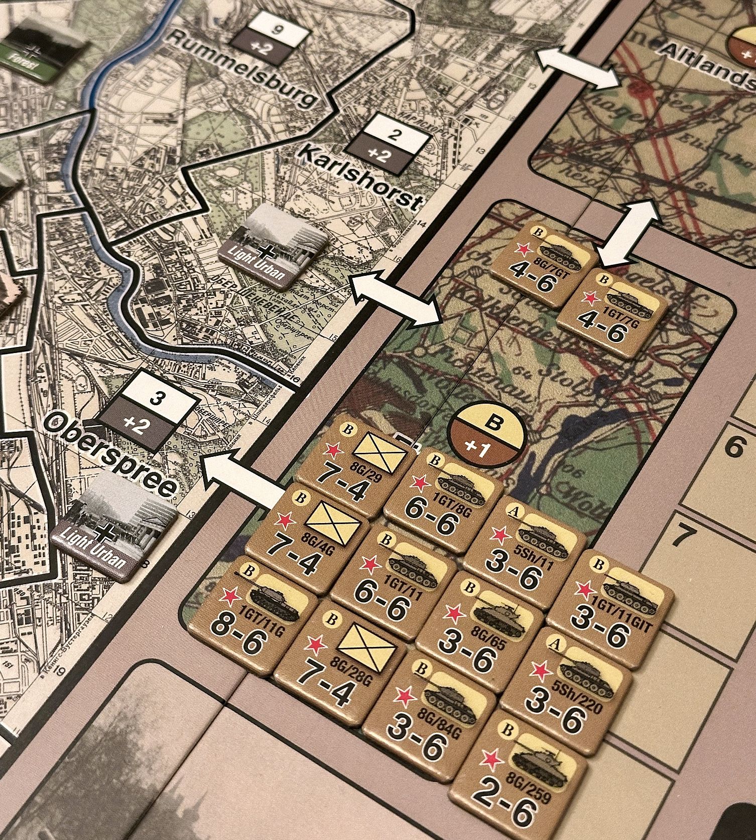 Berlin: Fall of the Reich, 1945 places the player in command of the war-weary yet experienced and determined Red Army, while the game system controls the largely static German defenders. No two playthroughs unfold the same way, as each turn introduces new challenges through random events, uncertain supply deliveries, and hidden German defensive strengths and strategies.