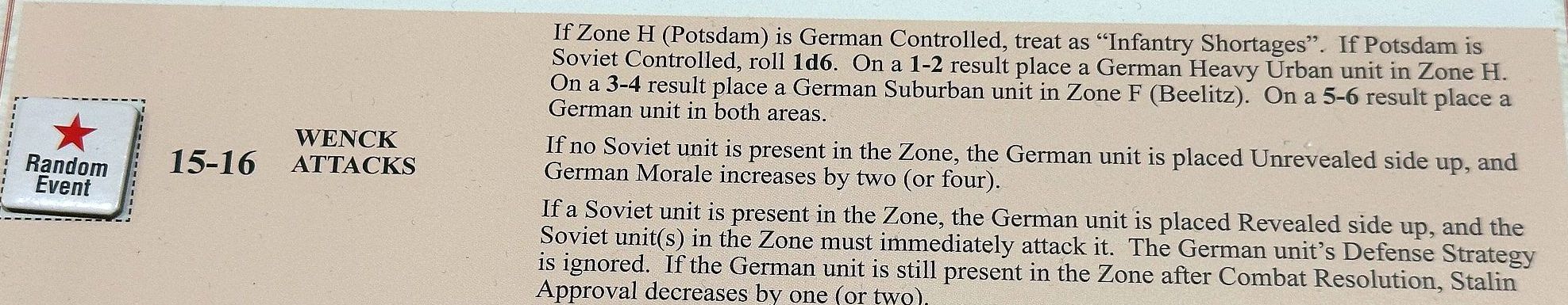 - Automatic Player Defeat: The game ends immediately and the player has lost if at the end of any Turn Stalin Approval is zero (0). Design Note: Berlin will eventually be conquered but the player will not share in the glory.