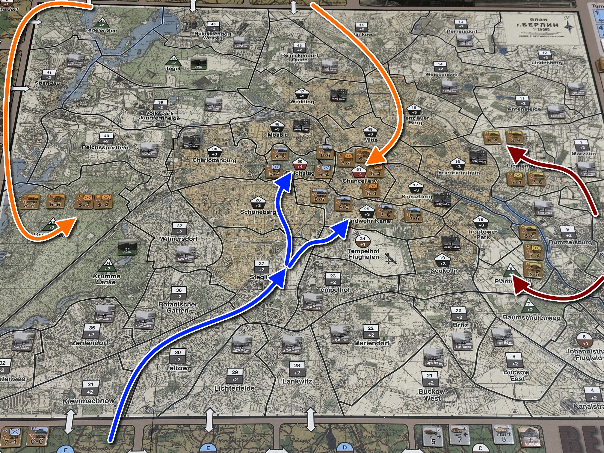- Operational Victory: If an Automatic Victory has not been achieved by the end of Turn 9, the game’s final Turn, the Soviet player wins if they control Area 50 (Reichstag), Area 51 (Chancellery), Zone H (Potsdam) all four airfields, and German Morale is less than five. If they fail to do so, the player has lost the game.