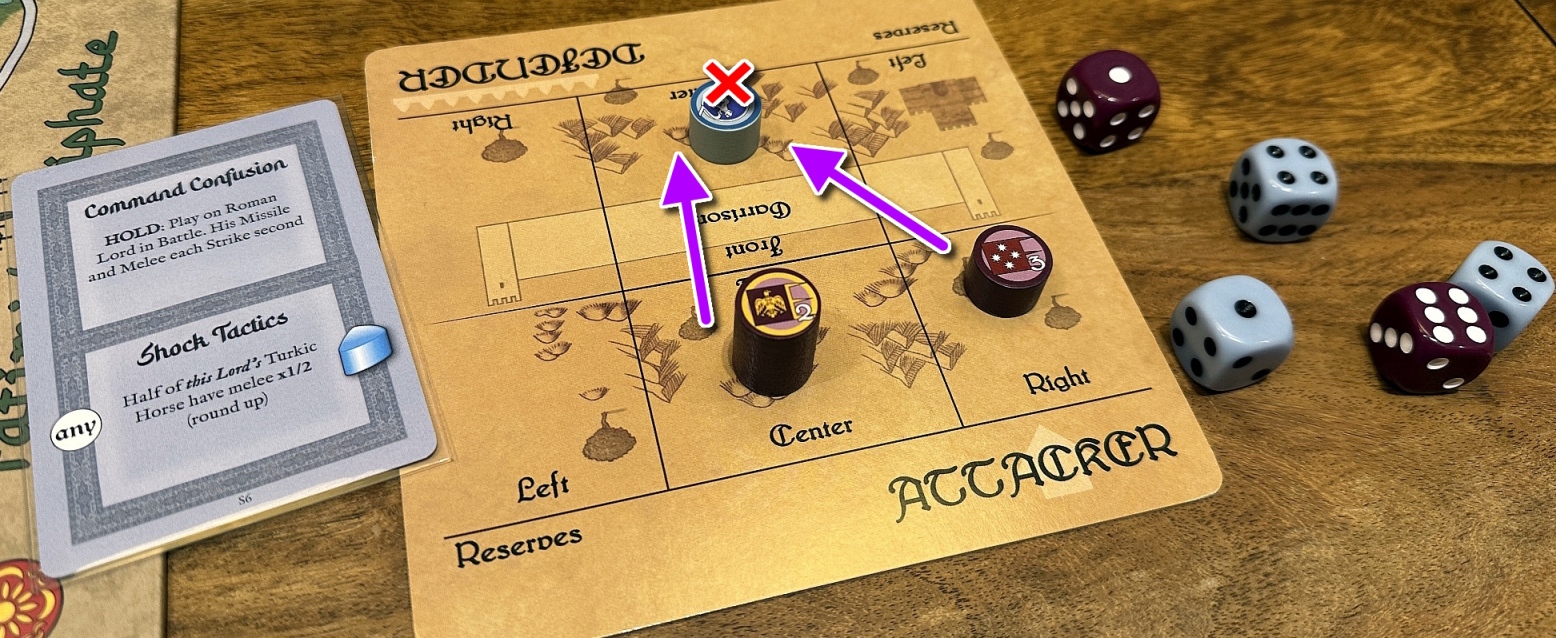 Victory: The Seljuks win immediately if Romanos IV is permanently Disbanded, or Aleppo is Seljuk conquered at the end of Autumn 1071 (Aleppo Independence is considered to have been revealed). The Romans win immediately if Alp Arslan is permanently Disbanded, or Manzikert and Khliat both contain Roman Conquered markers and Aleppo is not Seljuk-conquered. Otherwise, whichever side has more VPs at the end of Autumn 1071 is victorious. Both sides scores 1 VP for each permanently Disbanded Lord of their opponent.